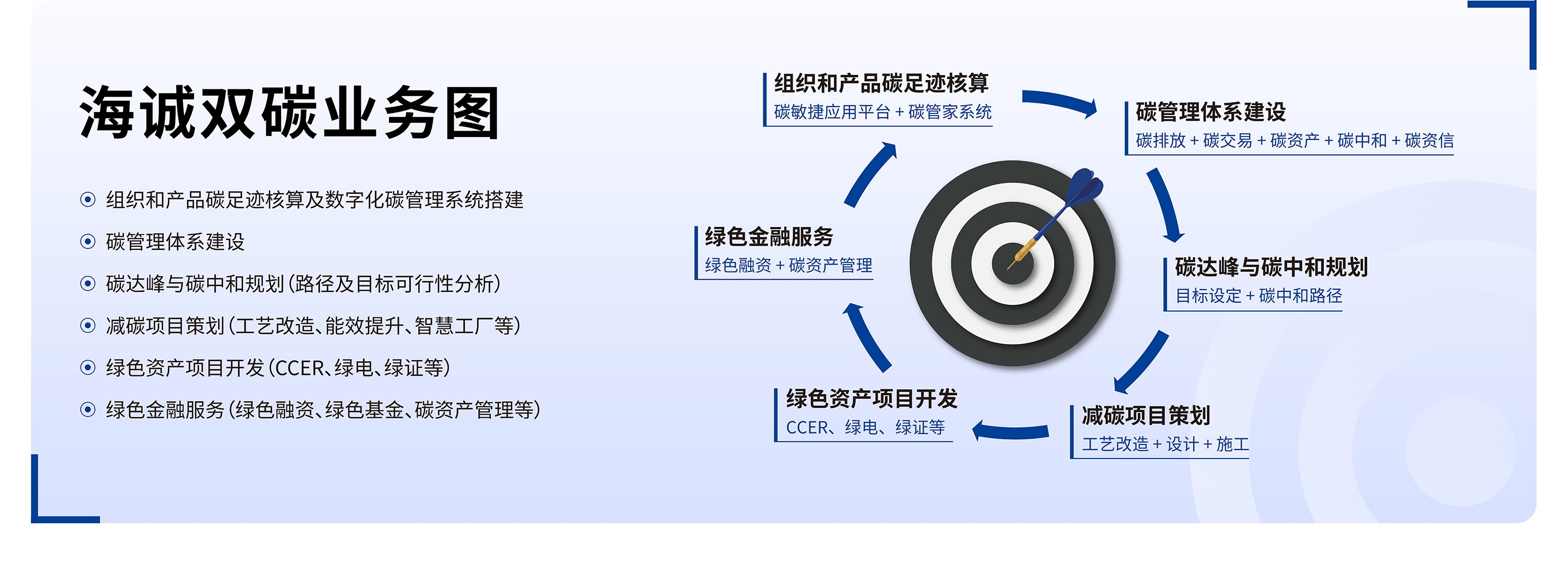 雙碳科創中心業務涵蓋“雙碳(tàn)”谘詢(組織和產(chǎn)品碳(tàn)足跡核算、碳管理體係建設(shè)、碳達峰與碳中和規劃、減碳項目策劃、綠色資(zī)產(chǎn)項目開發、綠色金融服務、活動碳中和方案設計等)、綠色專項谘詢(中國綠色建(jiàn)築谘詢、LEED/WELL認證、超低能耗建築谘詢(xún)、海綿城市設計谘詢等(děng))服務,並參(cān)編了大量“雙碳”領域政策性文件及(jí)行業標準(zhǔn)文件。
