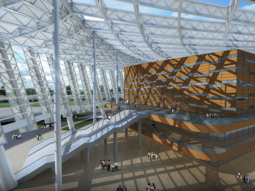 Comprehensive stadium is a class A stadium. It can mainly meet international standard for basketball competitions, and can hold other types of events as well. This project is social undertakings during the "Twelve-Five planning", and is also the key project to realize Zhabei "central prosperity".