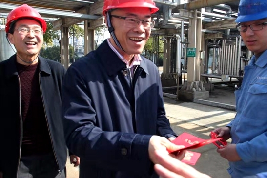 張萬(wàn)順深入中控室、配電室、生產(chǎn)車間、環氧卸車平台(tái)、汙水處理站。每(měi)到一處,他都與員(yuán)工一一親(qīn)切握手,“同誌們辛苦了(le)”,“給大家拜年了”,一聲聲問候,一句句祝福,溫(wēn)暖了堅守一線的每一位員工。