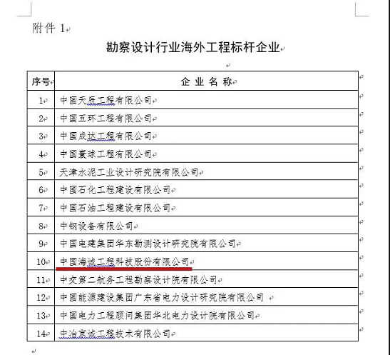 “海外工程標(biāo)杆企業”是中國勘察(chá)設計協會為(wéi)表(biǎo)彰在海(hǎi)外(wài)市場(chǎng)開拓中取得優異成績的企業而設立,本次有14家企業入圍名錄,是從全國兩萬(wàn)四千多家(jiā)勘察設計單位中擇(zé)優選出的。