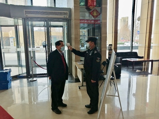 近日(rì),隨著複工複產潮的來臨(lín),疫情防控進入新階段。2月3日,中輕集團總經理郭建全檢查中輕大廈新冠病毒肺炎疫情(qíng)防控工作。郭建全查(chá)看體溫檢測(cè)點和大廳情況,向值班人(rén)員詳細了解大廈內環境消毒、聯(lián)防聯(lián)控等防範措施的具體內容和落實情況,向值班值守(shǒu)人員表示慰問,叮囑大家值守的同時切實做好自我防護,以良好的身體和精神狀態(tài)投(tóu)入到疫情防控工(gōng)作中去。