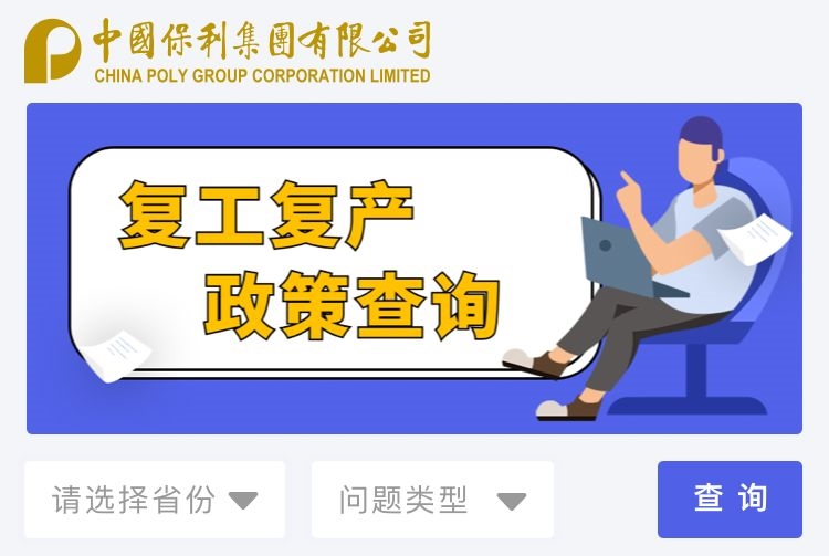 保利集團深入貫徹落實關於統籌推(tuī)進疫情防控和經濟社會發展工作部署會議精神,在穩抓疫(yì)情防控、全力推進集團(tuán)內部複工複產(chǎn)的同時,充分發揮央企主力軍的作用,由保利集團信息中心與中輕(貴州)工業互聯網有限公司聯合推出複工複產政策查詢服務,為各行業企業、群(qún)眾全麵了解疫情防(fáng)控、複工複產政策提供信息支持。