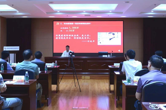 2020年7月17日下午,中輕集團黨委委員、紀委書記崔久衡以《讓黨旗在防控疫情(qíng)鬥爭第一線高高飄揚》為主題(tí),從一個黨員就是一麵旗幟,一個支部就是一個堡壘;怎麽幹?黨員不鬆勁,群眾(zhòng)才更(gèng)有信心等方麵進行闡述,為皮革院(yuàn)黨員幹部講了一堂(táng)生動的黨課。中輕(qīng)集團紀檢監察部(bù)主任羅傑、皮革院領導班子成(chéng)員、助理(lǐ)以上中層幹部、黨支部書記、支委及團支部委員(yuán)等參加學習,皮革院黨委書記陳鐳主持本次(cì)專題黨課學習會(huì)。