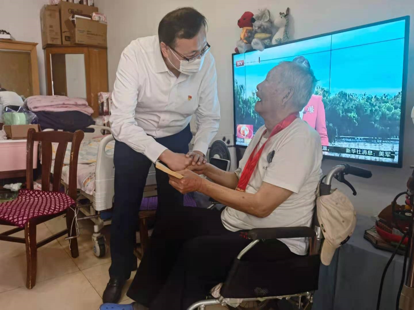 6月30日上午,劉軍才、曹文素、崔久衡一行前往(wǎng)72年黨齡的梁清枝老先(xiān)生家中慰問,詳細詢問了梁老的身體情況和生(shēng)活狀況,叮囑梁老要(yào)保重身體,並祝福梁老身體健(jiàn)康、生活幸福。