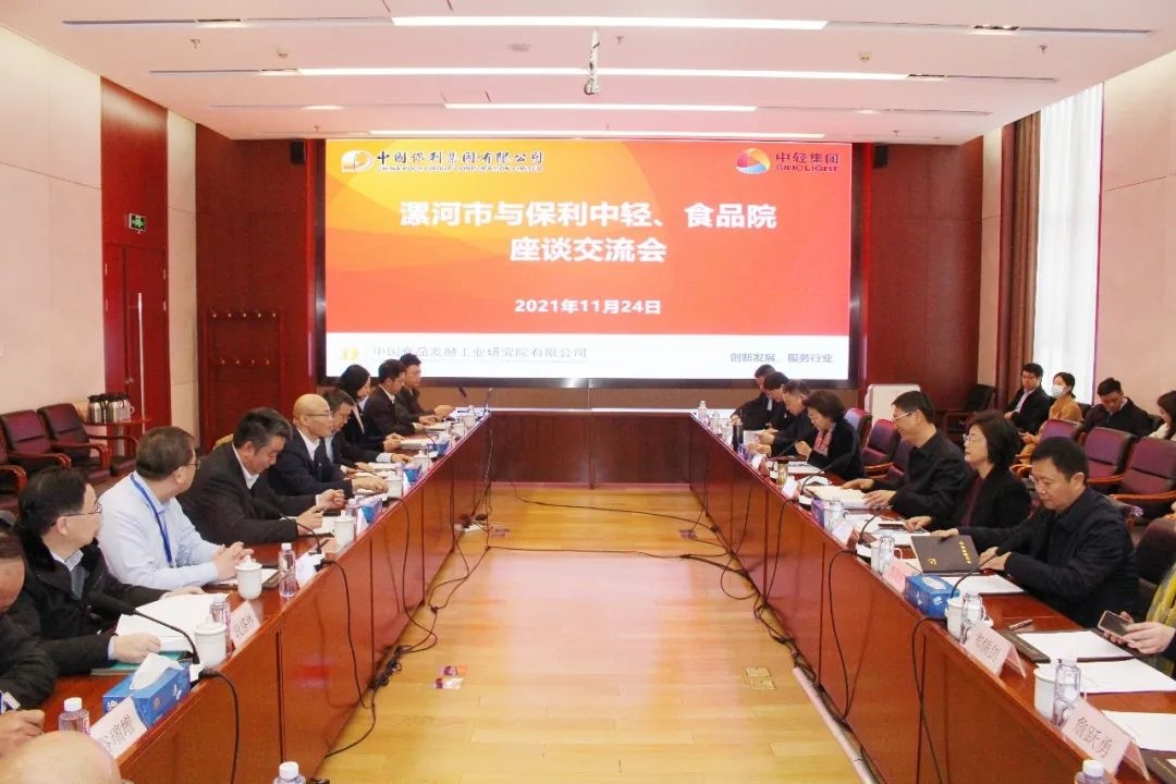 2021年11月24日上午,中國保(bǎo)利集團有限公司(以下簡稱“保利集團(tuán)”)黨委常委、副總經理,中國輕工集團有限公司(以下簡稱“保利中輕”)黨委書記、董事長張萬順,保利(lì)中輕紀委書記(jì)童雲翔、副總經理蔡木易在中國食品發酵工業研究院有限公司(以下簡(jiǎn)稱“中國食品研究院”)會見(jiàn)河南省漯河市市委書記劉尚進、市政協主席呂岩、市委常委(wěi)、宣傳部部長、市政府副市長常英敏一行,雙方就推動(dòng)未來合作進行交流探討。