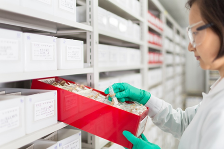 科研人員在中國傳統發酵(jiào)食品用微生物菌(jun1)種資源(yuán)庫調取菌種(zhǒng)