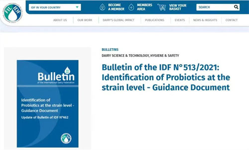 2021年12月15日,國際乳品聯(lián)合會(IDF)正(zhèng)式發布由中國食品院牽(qiān)頭修訂的《IDF公(gōng)報N°513/2021 益生菌菌株水平鑒定指導文件》。