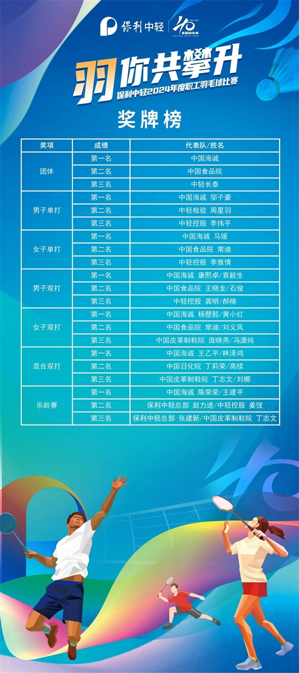 秋風送爽,碩果飄香。10月18至19日,“羽”你共攀升(shēng)—保利中輕2024年度職(zhí)工羽毛球比賽在(zài)雙奧之(zhī)城北京成功舉辦。