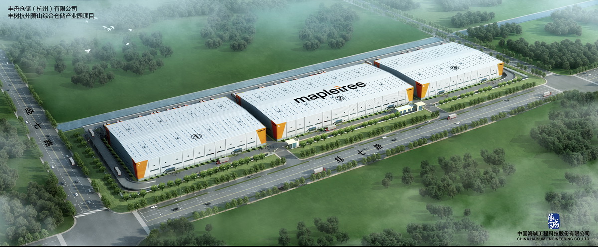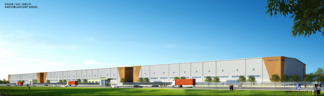 本期地塊(kuài)裏麵主(zhǔ)要有3幢雙層物流倉庫、1個主門衛(含消防泵房和水池)、1個次門衛。總建築麵積115072㎡。