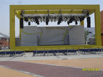 五大洲廣場為(wéi)上海世博(bó)園區露天舞台(tái)搭建工程,包括露天(tiān)舞台的輔助用房和露天舞台(tái),可舉辦各國各民(mín)族風情歌舞表演、大型戶外音樂會、演唱會(huì)、街頭(tóu)演藝活動等。固定(dìng)舞台,每個250平方米,工作區用(yòng)房麵積180平方米。建築麵積均為一層,舞台麵積約為360 m2,最高高度(dù)為10.0米。上部結構形式為鋼結構構架,為世博園區(qū)臨時建築。