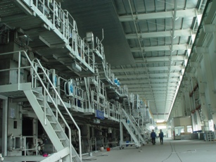 年產35萬噸牛皮箱板紙工(gōng)程,主機由德國voith公司提(tí)供(gòng),該機是目前(qián)世界上同類型板紙機運行(háng)車速最快的。建設內容有廢紙處理、造紙完成(chéng)及輔助設施等。