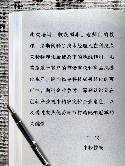 截至目前,保利(lì)中輕已組建百餘(yú)人技(jì)術經理人隊(duì)伍,覆蓋研發、工(gōng)程、市場等(děng)關鍵環節,構建起“技術—產業—資本”協同聯動的人(rén)才矩陣。下一步,將牢固樹立“產品思維”“市場思維”“技術思維”的“三維(wéi)一體”創新理念,強化生態協同,創新培養範式,培育一批兼具“技術洞察、市場研(yán)判、資本運作”能力的(de)複合型人才,賦能產業升(shēng)級(jí),助力保利中輕高質(zhì)量發(fā)展。