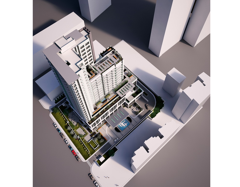 上海紅寧護理院位於上海市長寧區,西臨凱旋(xuán)路。地塊(kuài)內有一幢高層建築及門衛,高層建築地下二層,地(dì)上二十(shí)一層,總建築麵積26611.8㎡。地下二層為車(chē)庫和公(gōng)共設備用房,地下一層為員工(gōng)食堂,中央(yāng)廚房和公共(gòng)設備用房,一至(zhì)四層的(de)裙房為公共空間,包括康複中心、醫技(jì)室、多功能廳等,滿足大樓內人員的護理需求,五層及以上為護理房間。設計床位數(shù)99床