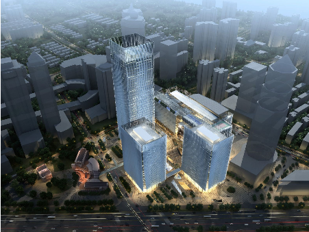 三棟塔(tǎ)樓,最高樓38層,最大高度194米(mǐ)。地上(shàng)總建築麵積31萬平方米,地下16萬平方米。